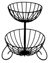 The upper level baskets slip into the levels below. Three gracefully curving legs elevate the bottom basket off the ground.